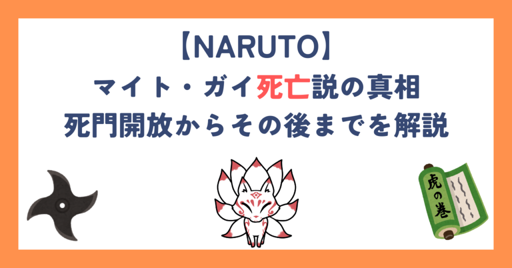 「自分には才能がないのかもしれない」「この努力は、本当に報われるのだろうか…」 人生で誰もが一度はぶつかるそんな壁の前で、心を奮い立たせる言葉があります。 『NA... バトル・アクション【ナルト】マイト・ガイ死亡説の真相|死門開放からその後までを解説