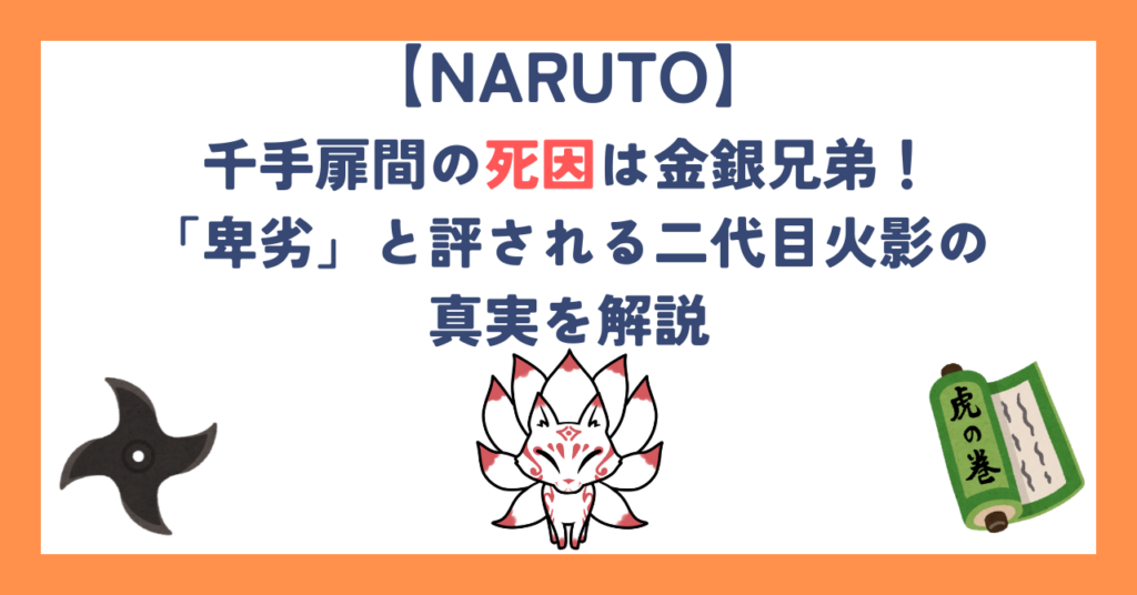 【ナルト】千手扉間の死因は金銀兄弟!「卑劣」と評される二代目火影の真実を解説